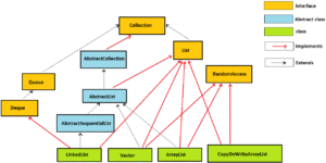 - ArrayList : An implementation that stores elements in a backing array. The array’s size will be automatically expanded if there isn’t enough room when adding new elements into the list. It’s possible to set the default size by specifying an initial capacity when creating a new ArrayList.