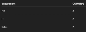 SELECT department, COUNT(*) FROM employees GROUP BY department;
