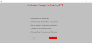 For the first window, we have a JFrame in which we added a picture on left corner and a JTextField followed by two JButtons Rules and Next.